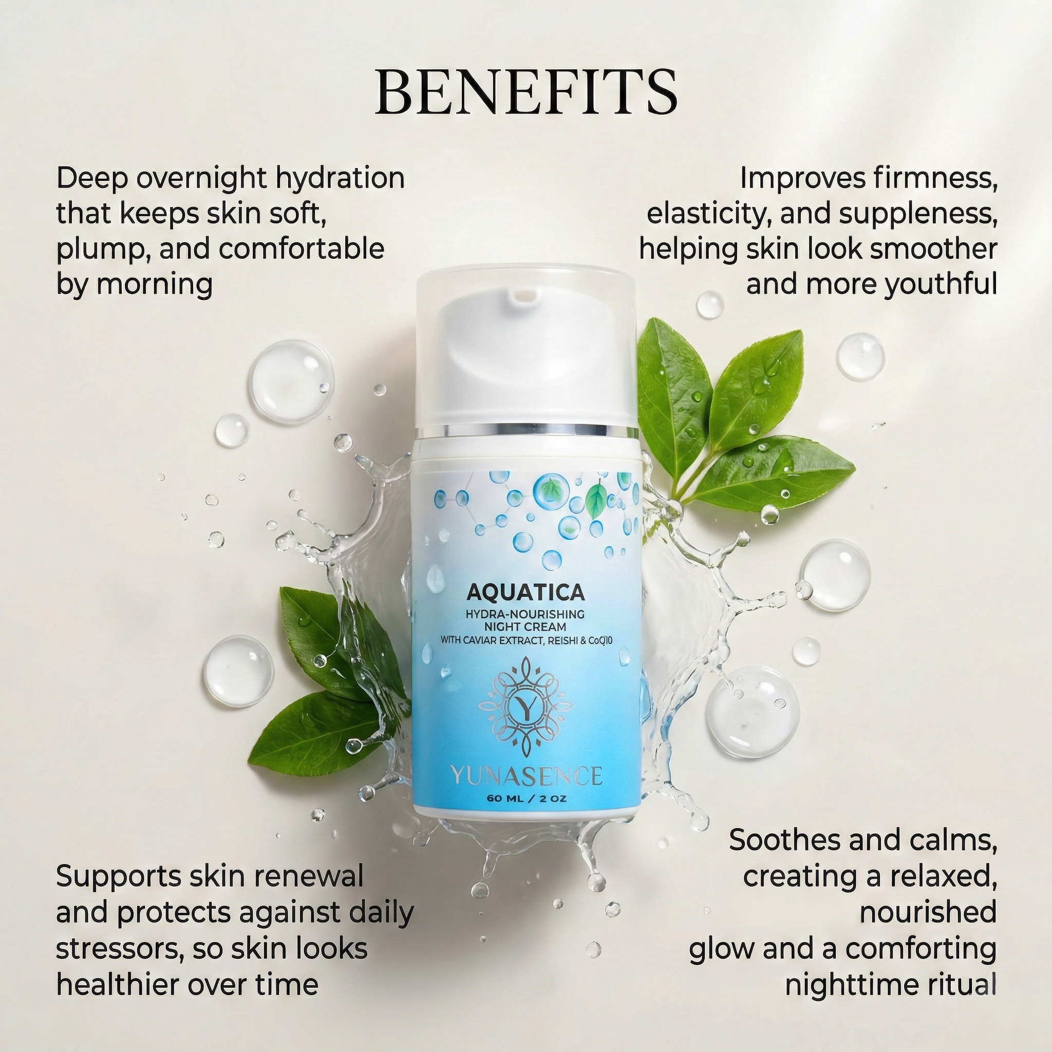 AQUATICA Hydra-Nourishing Night Cream with Caviar Extract, Reishi and CoQ10