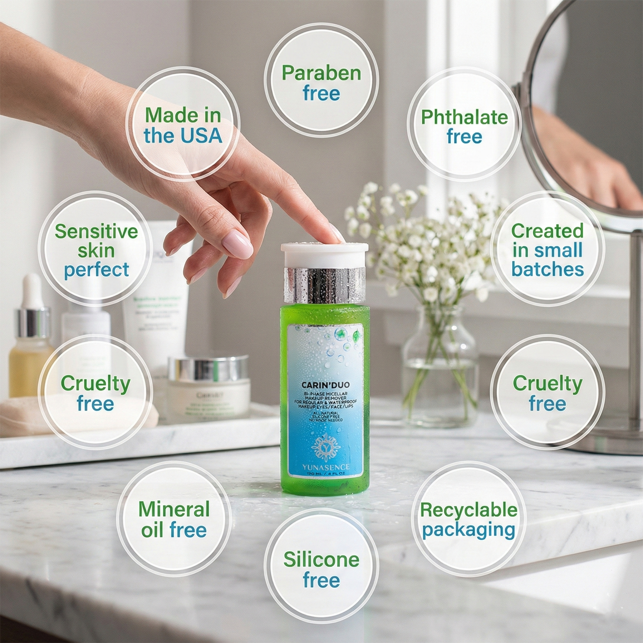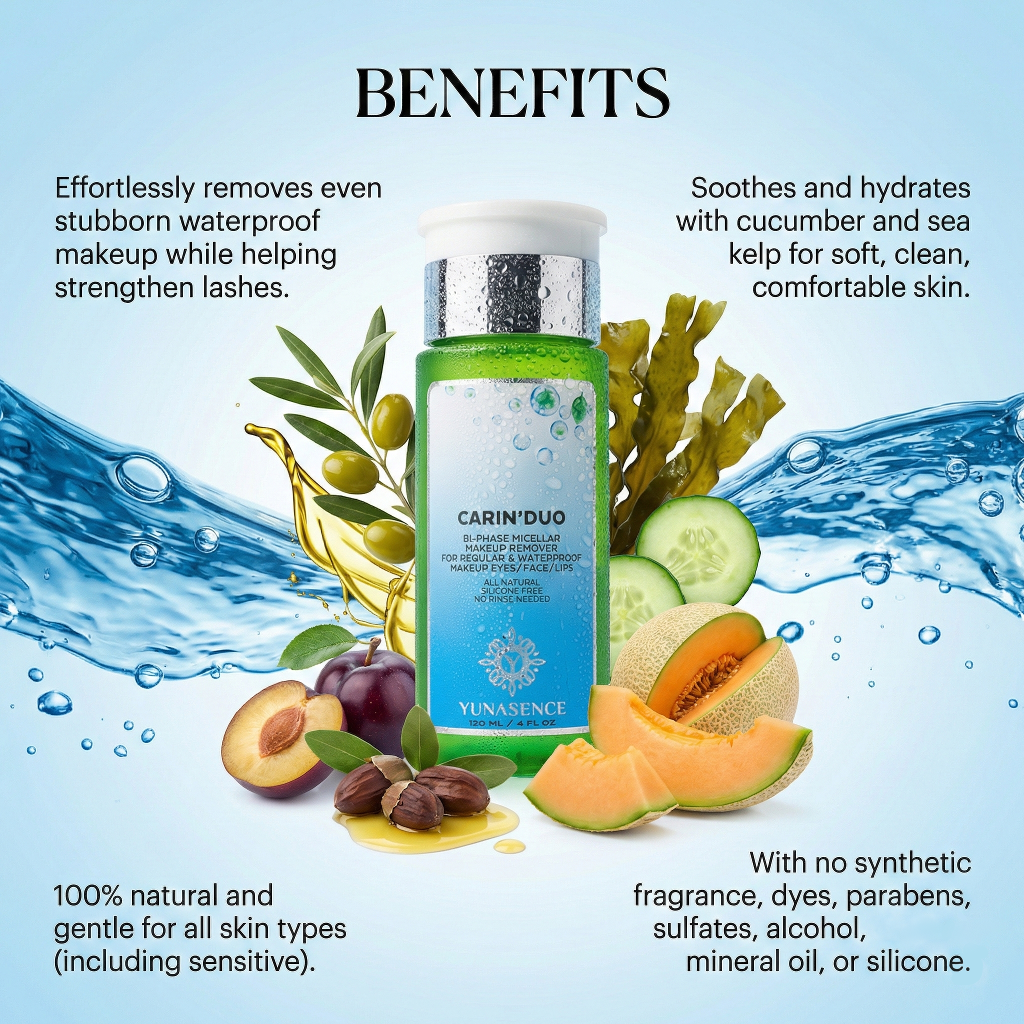 CARIN’DUO Bi-Phase Micellar Makeup Remover for Waterproof Makeup. Eyes/Face/Lips